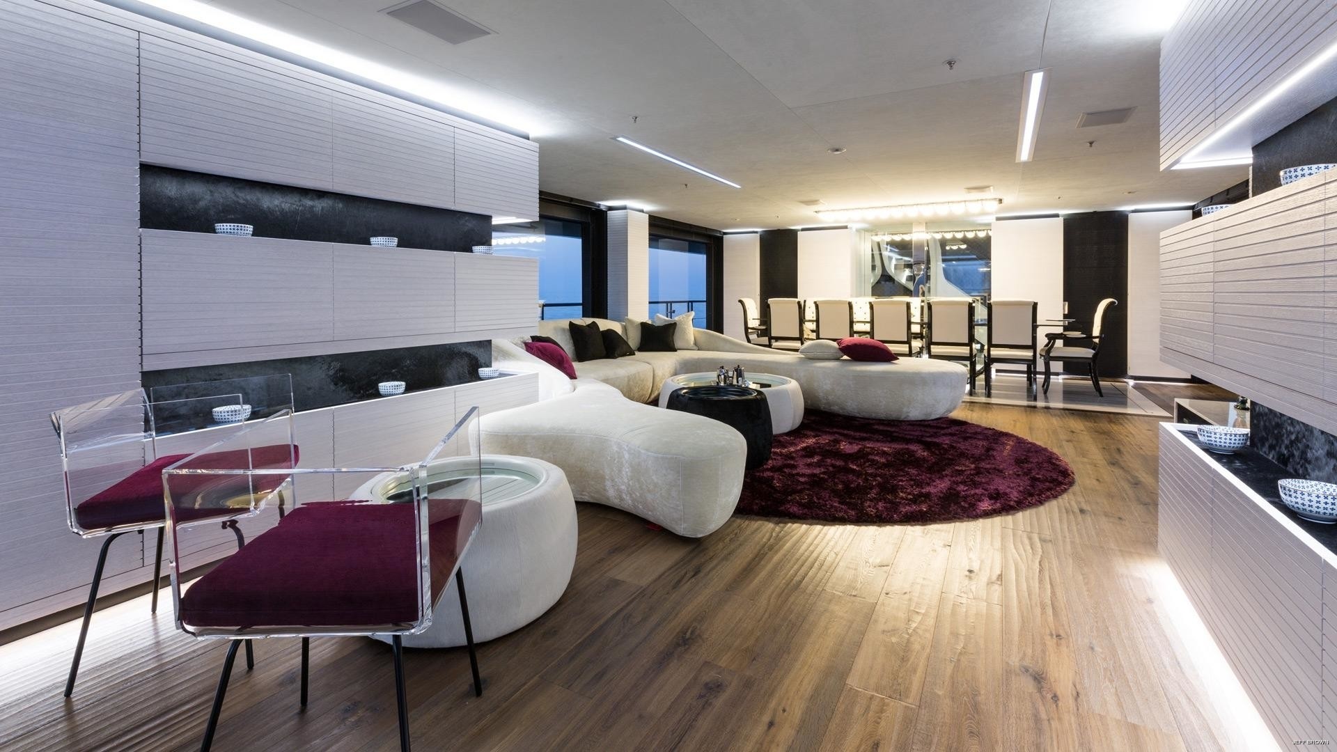 NOTABLE FEATURES OF 55M CUSTOM: huge decks to relax and entertain ~ beautiful saloon with elegant dining table and large sofa ~ sun deck with ...