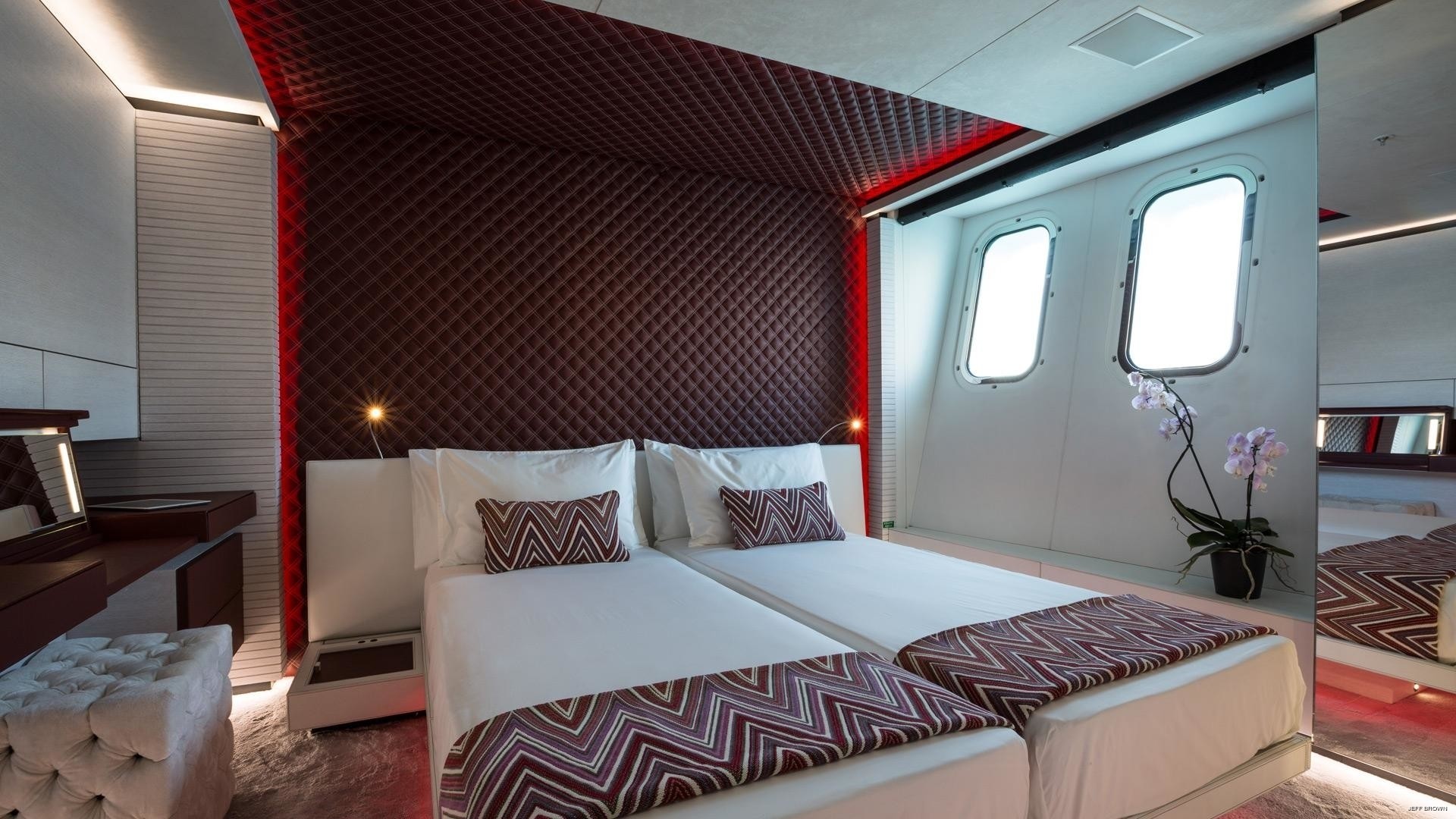 The Benetti 55m Custom has a 9.6m (31.5ft) beam, a 3.5m (11.5ft) draft. Her 2 x 2,367hp Caterpillar engines ensure a comfortable cruising speed of 15 knots.