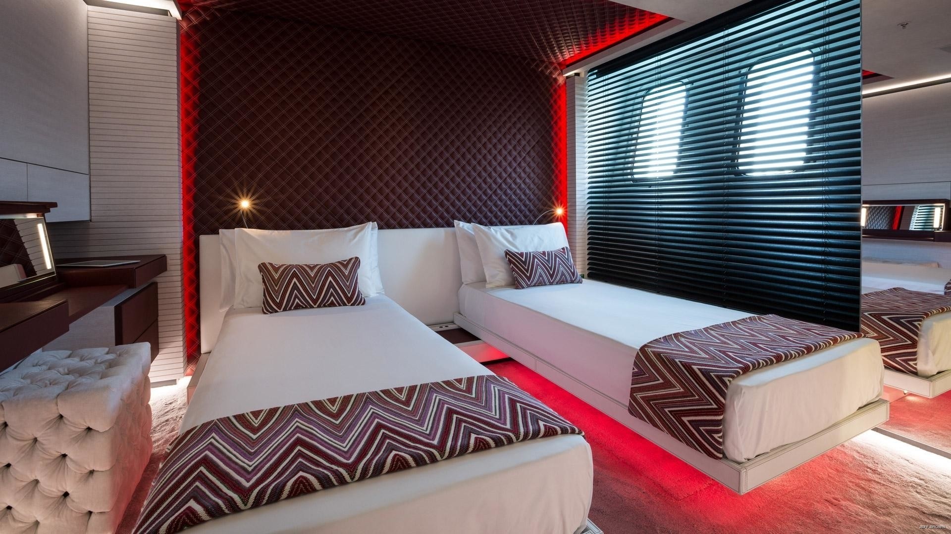 55m Custom Benetti is a motor yacht with a steel hull and aluminium superstructure which was built by the Italian shipyard in 2013. Her exterior was designed by Adrian Lee and the Asian inspired interior by Adrian Lee along with Mauro Izzo. She can sleep up to 12 charter guests in six guest cabins as well as accommodating a crew of twelve.