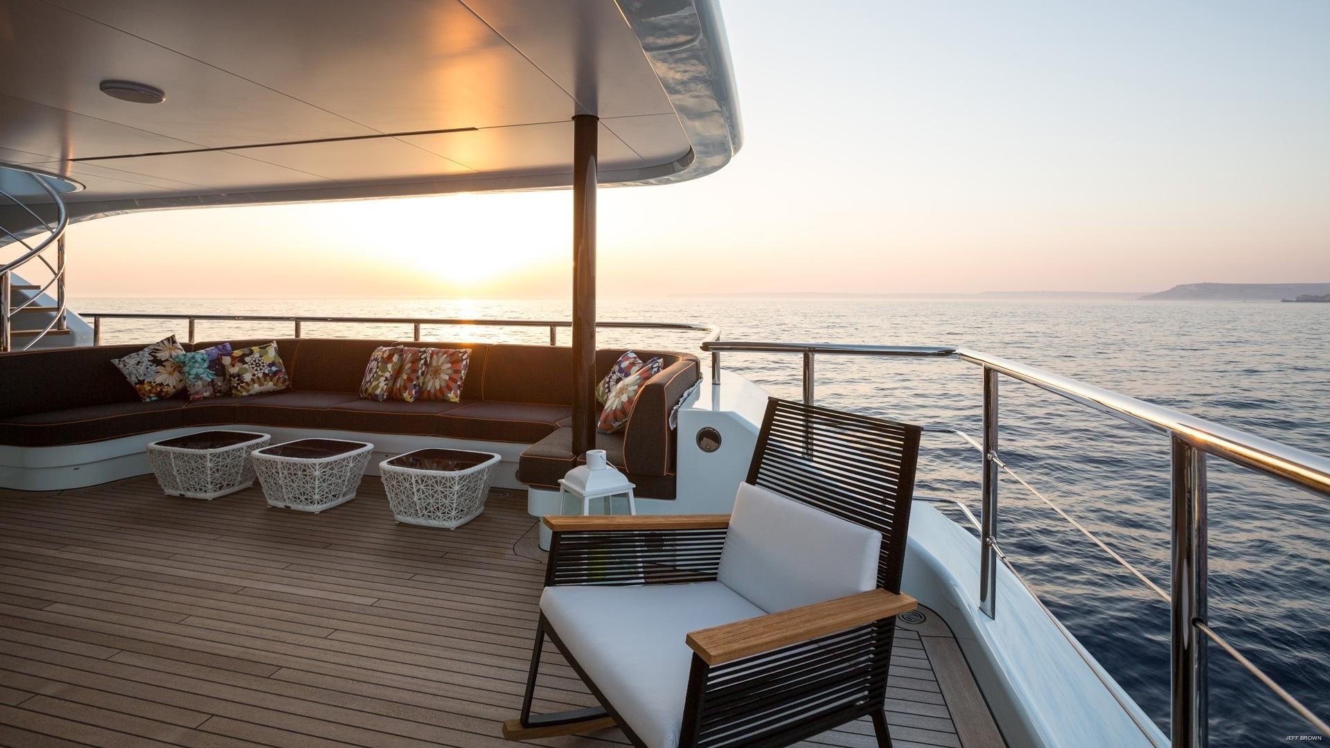 NOTABLE FEATURES OF 55M CUSTOM: huge decks to relax and entertain ~ beautiful saloon with elegant dining table and large sofa ~ sun deck with ...