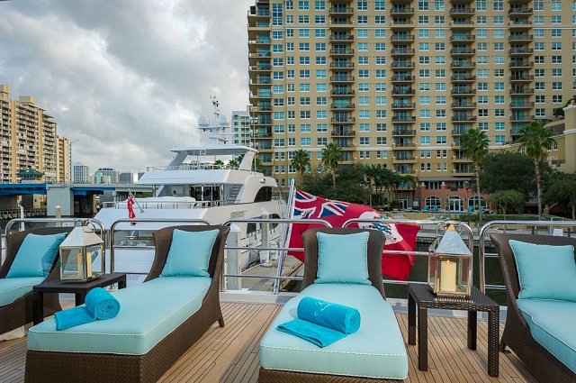 There are two double, and two twin cabins are below decks, each with an en-suite and A/V entertainment system.