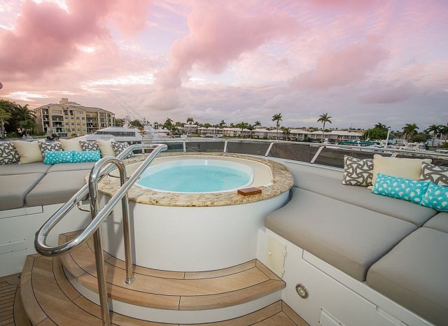 The master suite is on Main Deck and has a king, with an en-suite his/hers bathroom with tub and separate shower, comfortable sitting area, a walk-in closet from the bathroom or the stateroom and a private Owner's office.