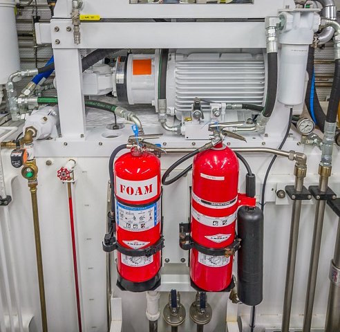 On the aft bridge deck, there is covered dining for 12 guests and room for lounge chairs on the open deck.