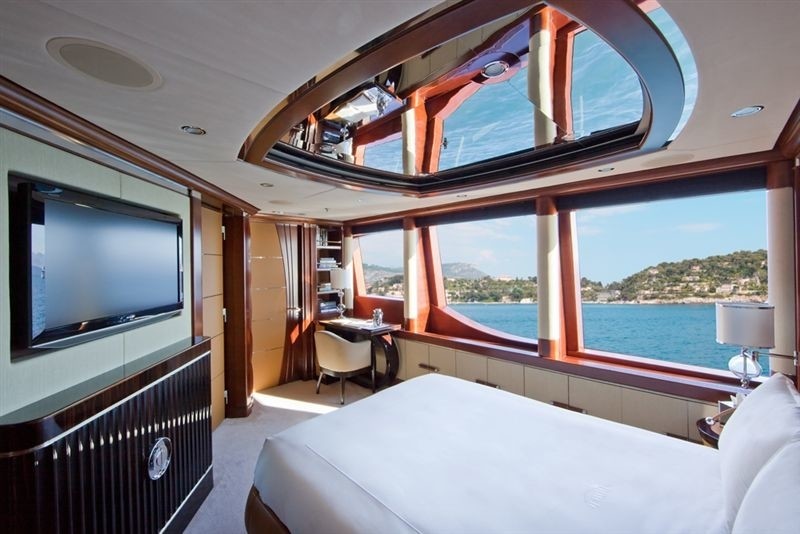 Three other double guest staterooms on the lower deck also have a double bed with en-suite shower and a large cupboard. The twin statement has a Pullman bed, an en-suite bathroom with shower. Timeless styling, art deco influences and lavish seating throughout, the 52m Custom Benetti is also capable of carrying up to 13 crew onboard.