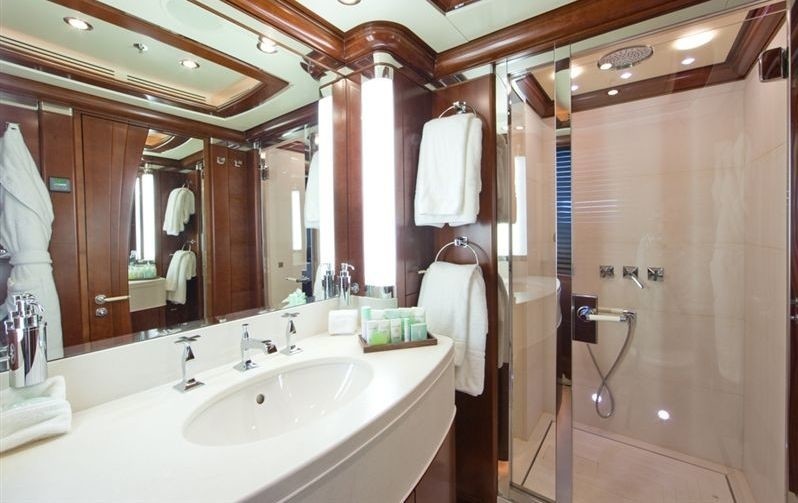 These include a master suite complete with a study and side terrasse. This cabin also has a king size bed, en-suite bathroom with shower and bathtub and a vanity for the ladies. There are also two separate, spacious dressing rooms. A superb VIP suite on the upper deck has a double bed and amazing views from the extended windows.