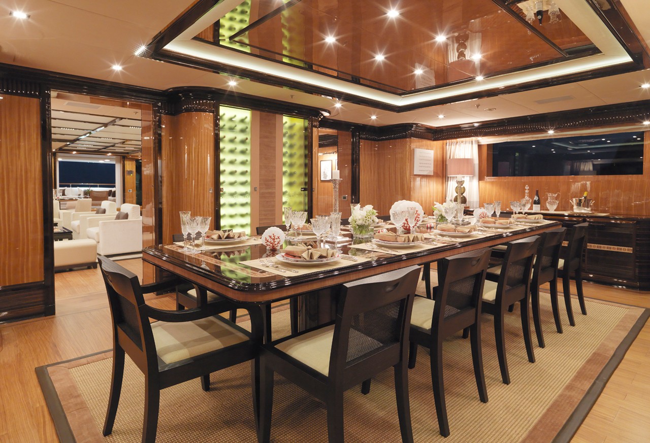 main formal dining area on the interior aft of the saloon on the main deckPhoto credit Benetti YachtsAbout 59m Custom Superyacht ...