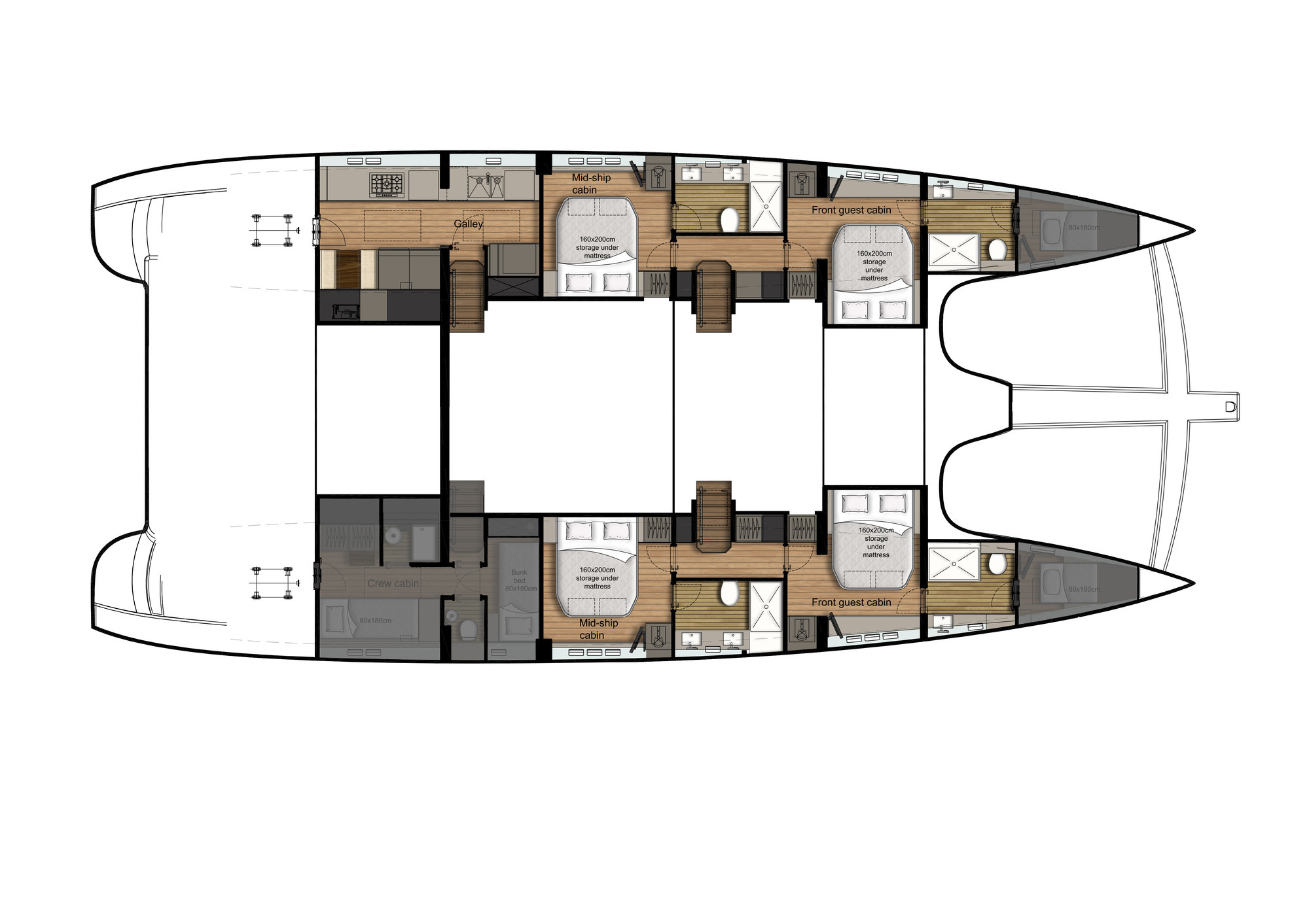 At 22.40m (73' 6") this outstanding yacht boasts great deck areas as well as lavish onboard luxury and comfort, offering accommodation to 8 charter guests in 4 cabins.