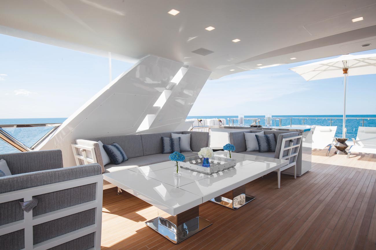 Veloce 140’s exquisite interior offers a stylish foredeck Jacuzzi area, a fully equipped gym, a huge sun deck (77 sqm) as well as accommodation for 10. The main deck has a relaxation room with daybed and a large television.