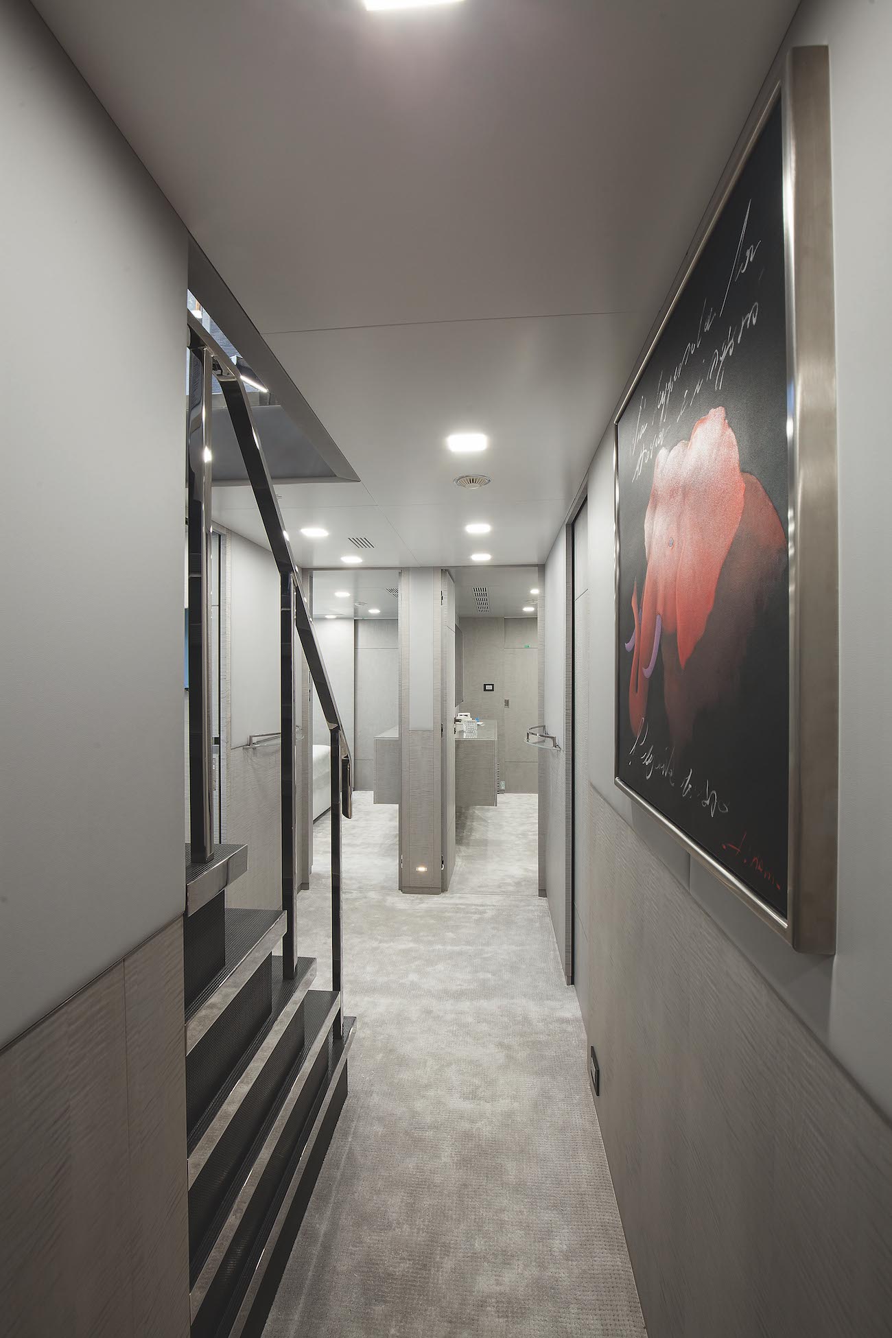 The yacht also features a central bar counter which runs the entire length of the bulkhead.