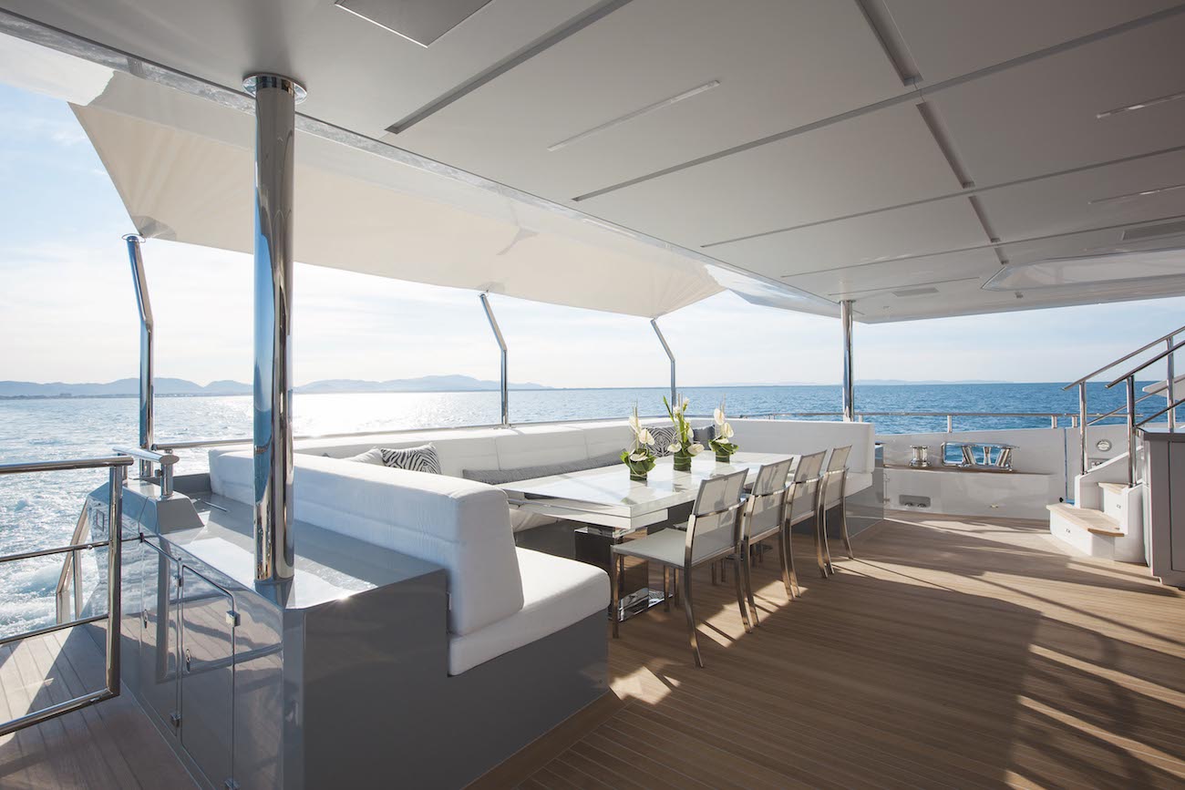 This ultra-luxurious yacht sleeps up to 10 charter guests in five luxury cabins and carries a crew of up to 8 who ensure a relaxed yachting experience for everyone.