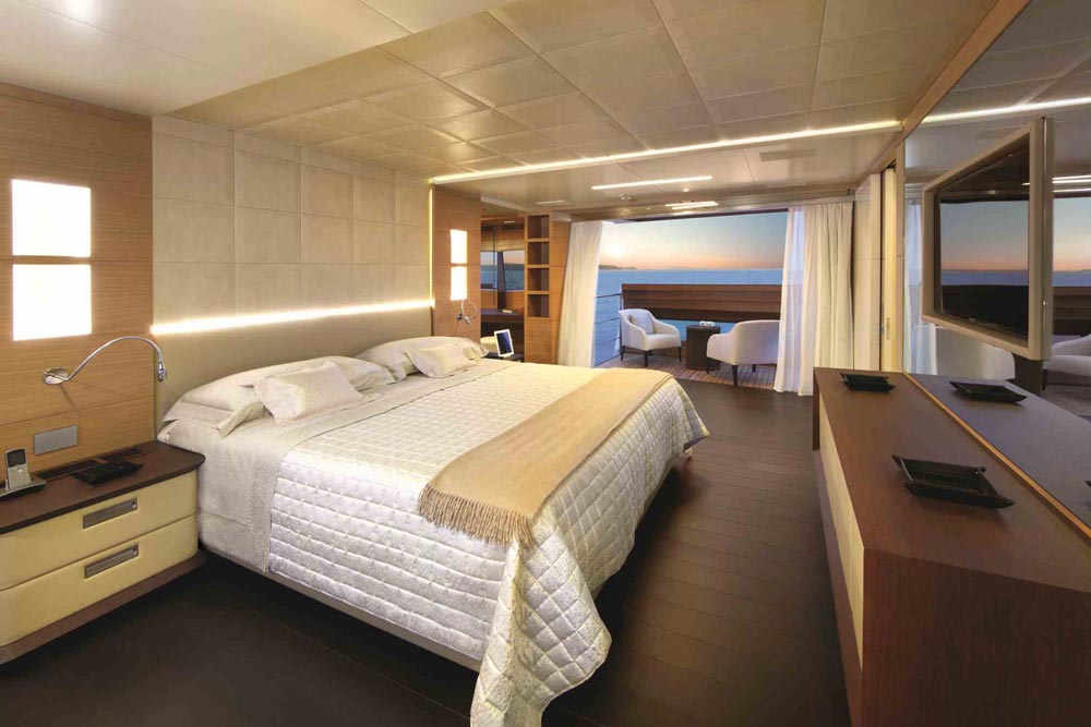 The superyacht has an L.O.A of 40m/132ft, a beam of 8m/27ft and a draft of 2m/8ft with exteriors designed by Stefano Righini, while Francois Zuretti was responsible for the interior styling, which follows clean and contemporary design trends.