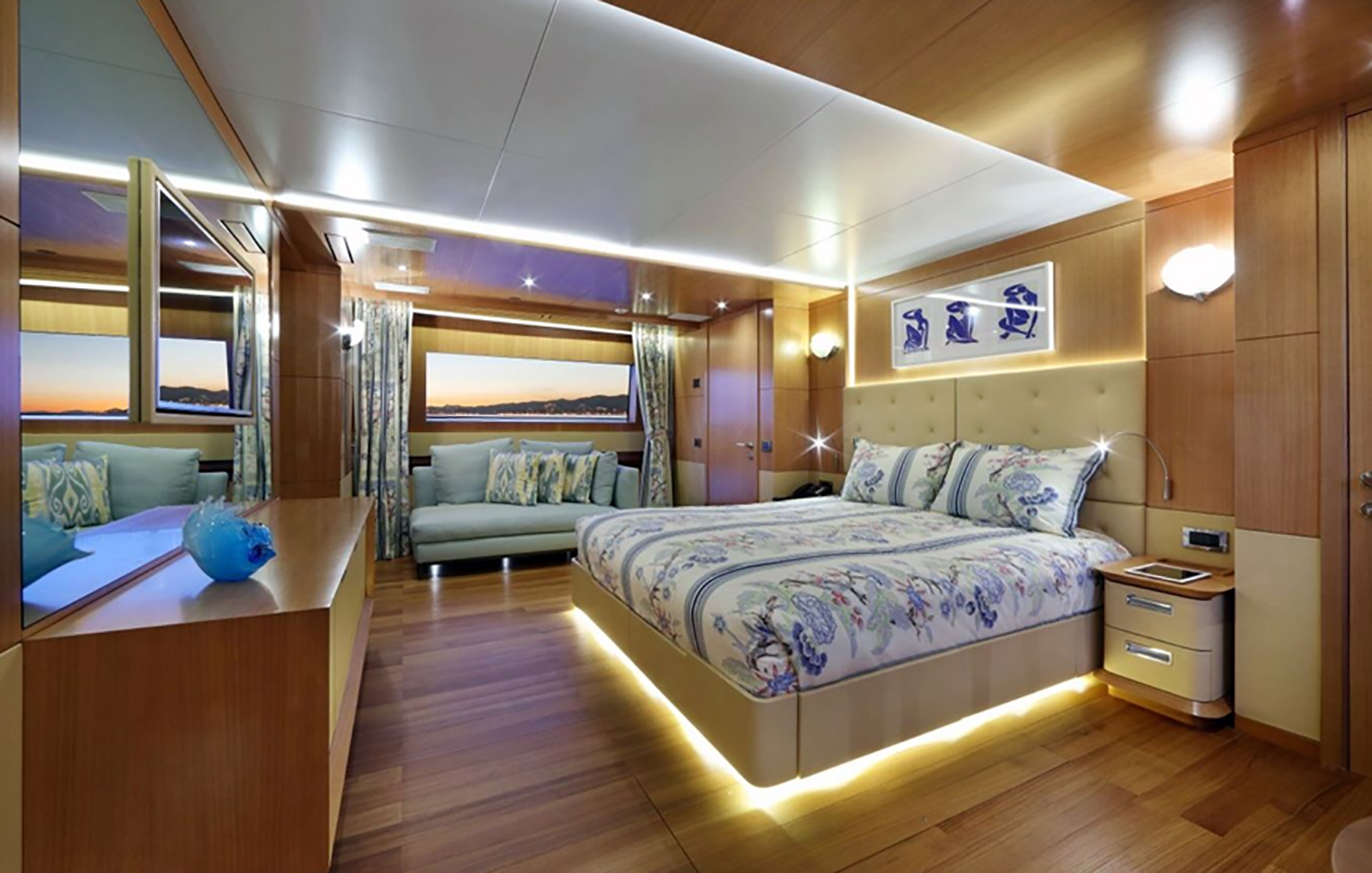 The superyacht has an L.O.A of 40m/132ft, a beam of 8m/27ft and a draft of 2m/8ft with exteriors designed by Stefano Righini, while Francois Zuretti was responsible for the interior styling, which follows clean and contemporary design trends.