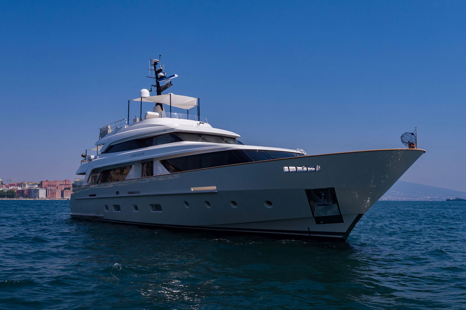 This 34.1m/111.88ft SD112 motor yacht provides charter guests with the option to unwind or get out on the water in style. She has bright and sumptuous accommodation for 11 guests in 5 rooms.