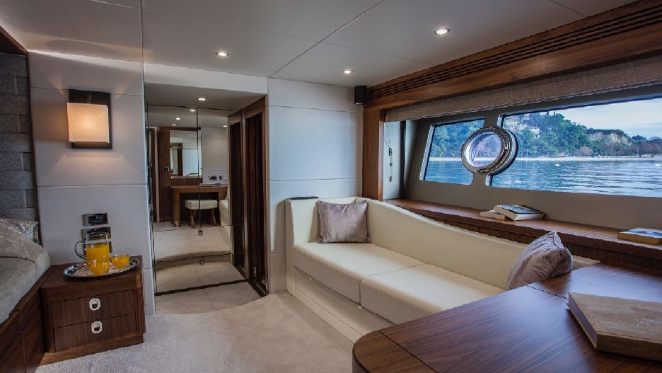 She has a large dining aft area, large sun pads and relaxing seating up on the foredeck, a great place for coffee in the morning. Her expansive sundeck/flybridge is perfect for soaking up the sun or if too hot, close the retractable canopy, enjoy the shade and read a book.