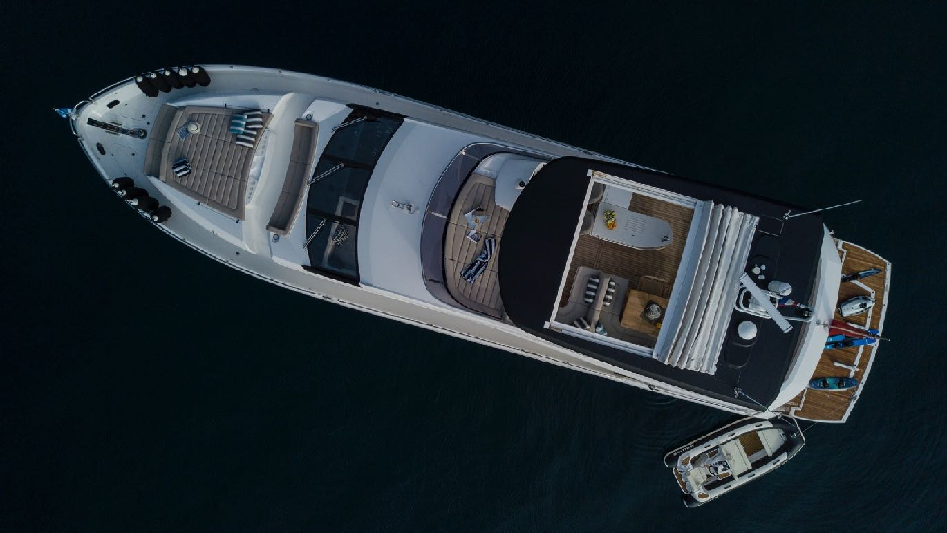 Mowana has a planing hull configuration, stabilisers at anchor and underway. She has a cruising speed of 24 knots, and her fuel consumption is 350 litres/hr. You are guaranteed plenty of fun onboard Mowana with her superb range of water toys.
