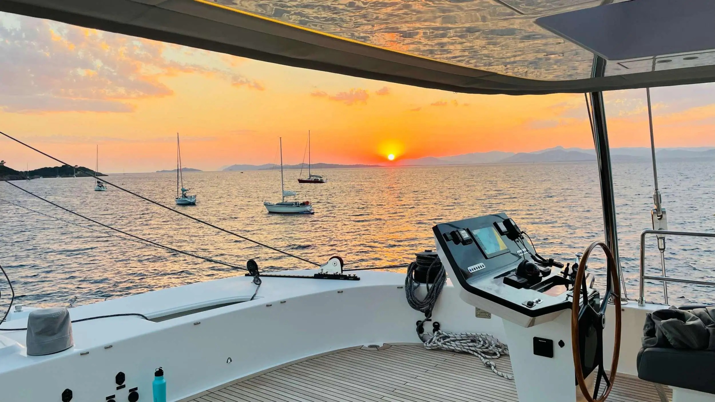 As well as offering elevated views of the surroundings, there is a forward helm station a row of sunpads on the starboard aft and a C-shaped seating area along the stern, shaded by a hardtop cover and complete with table for ...