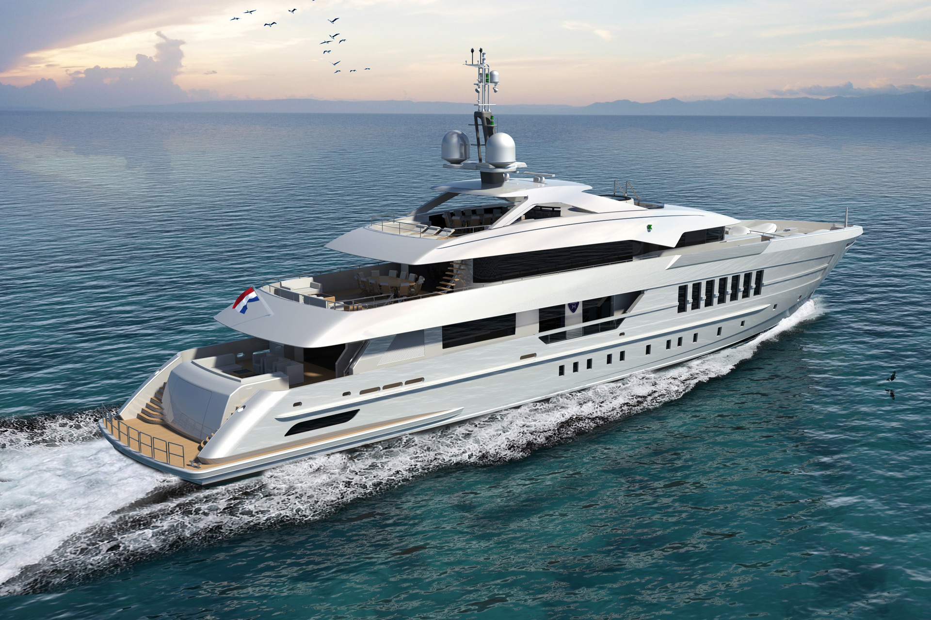 Naval architects Van Oossanen designed her Fast Displacement Hull Form (FDHF) for efficient fuel usage and excellent performance, while Frank Laupman of Omega Architects designed her strong exterior profile. Her elegant interiors were designed by RADYCA design studio.