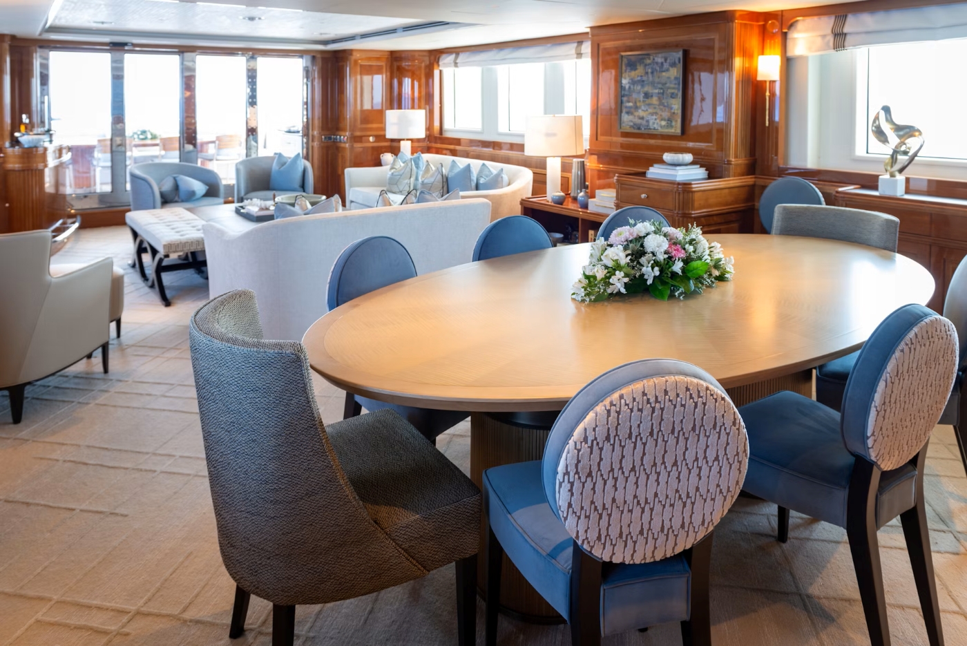 NOTABLE FEATURES: ~ elegant interior design ~ numerous dining areas ~ Lovely accommodation ~ main deck master suite ~ on board Jacuzzi ~ great range of toys ~ underway and at anchor stabilisers ~ air-conditioning ~ WiFi