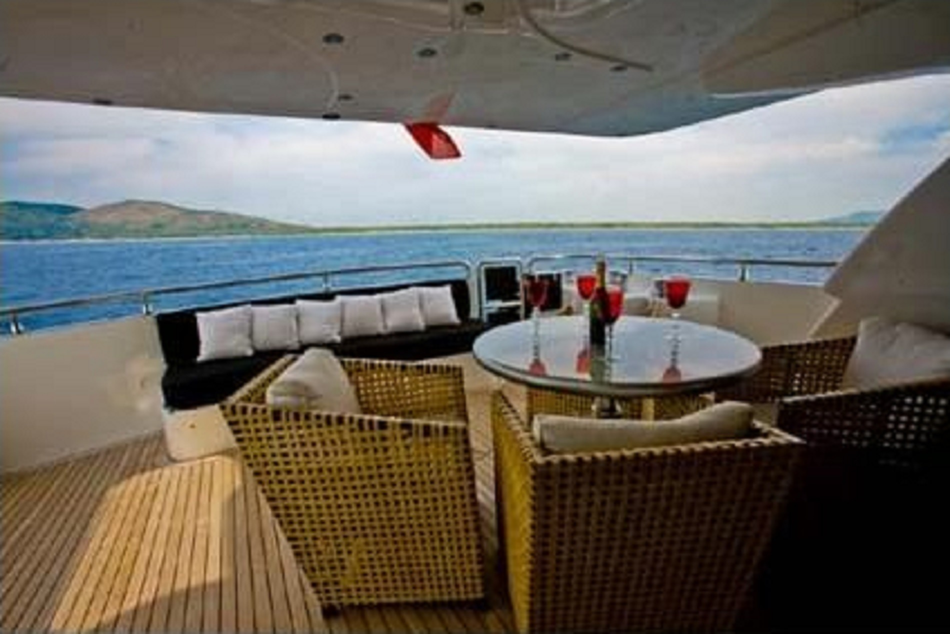 The aft deck opens into a welcoming lounge area perfect for morning coffee or evening aperitifs. Forward on the bow, a private sunbathing area invites peaceful relaxation with open sea views. The flybridge is the yacht’s ...