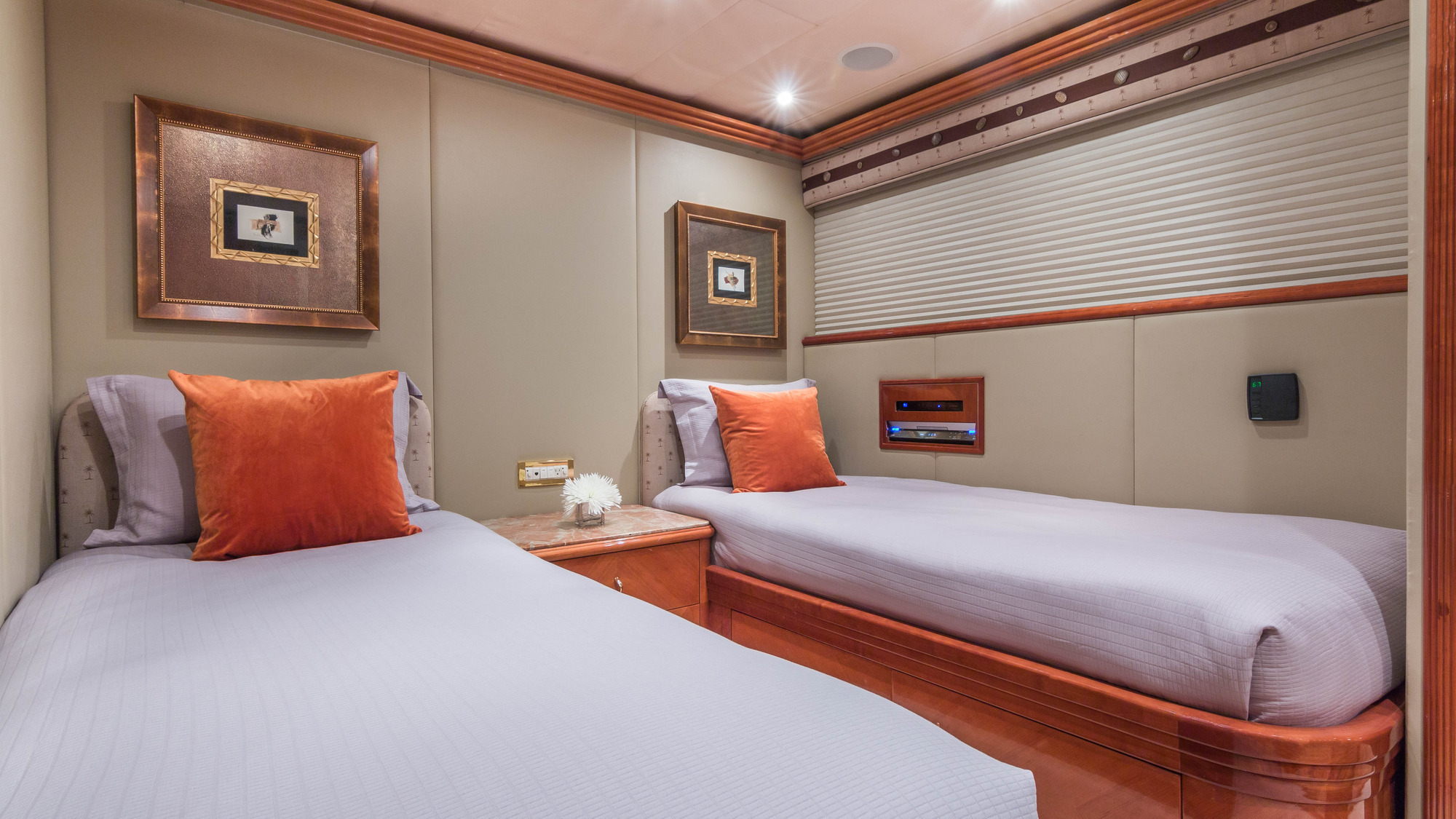 The lower deck accommodation is spacious in 1 master, 1 VIP and 2 twin cabins.