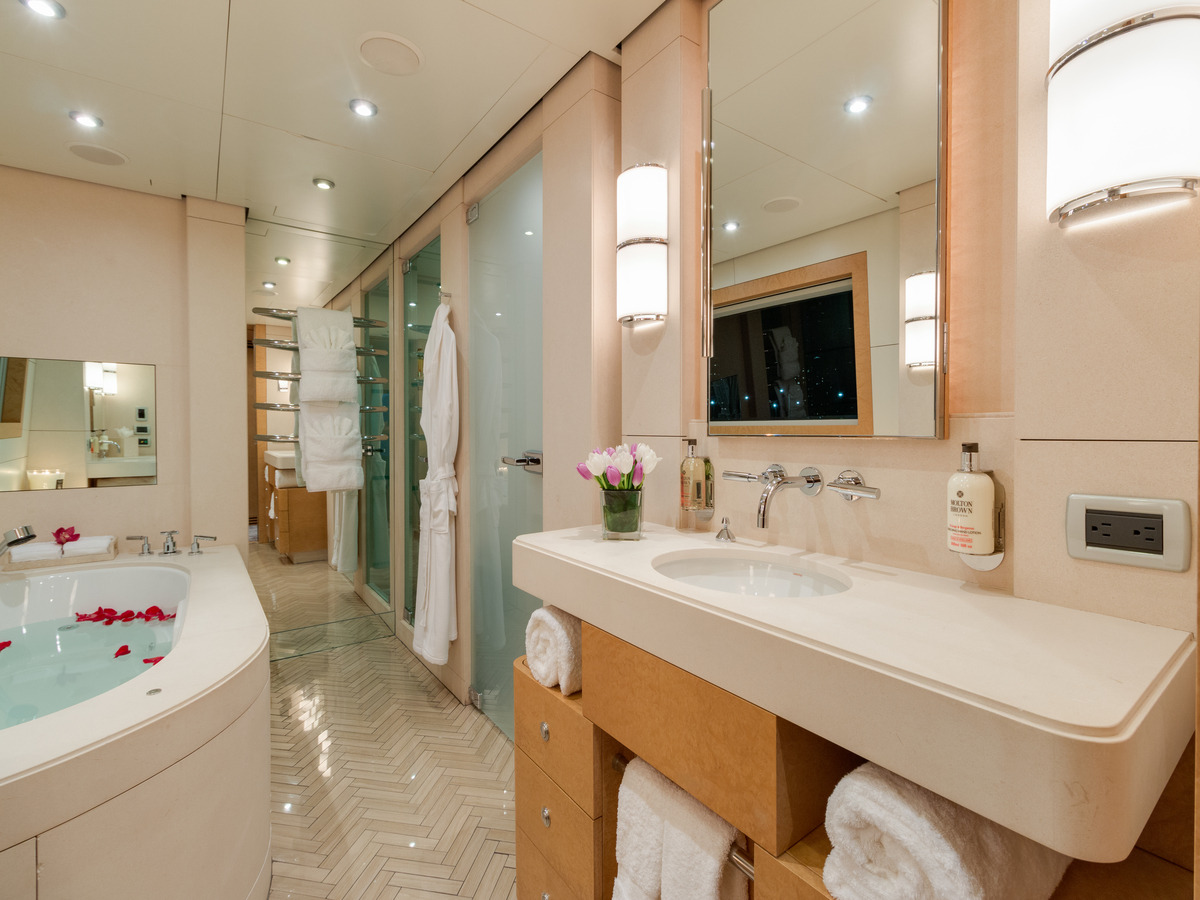 The guest staterooms are below deck and include two Queen and two twin bed layouts. Each stateroom has its own ensuite bathroom.