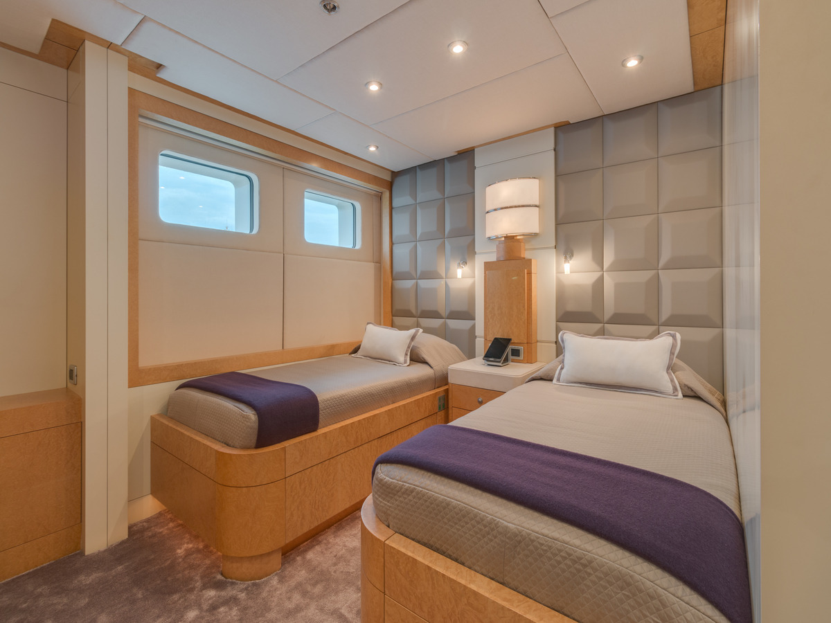 Designed by Sam Sorgiovanni, her interior is modern and bright, it features Japanese figured anigre wood and Ebony nacazar throughout.