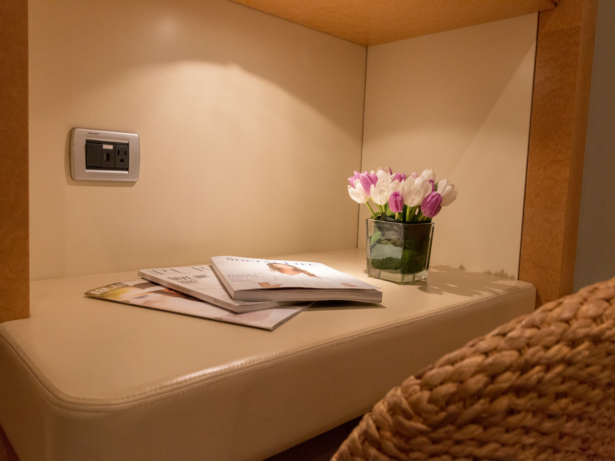 Designed by Sam Sorgiovanni, her interior is modern and bright, it features Japanese figured anigre wood and Ebony nacazar throughout.