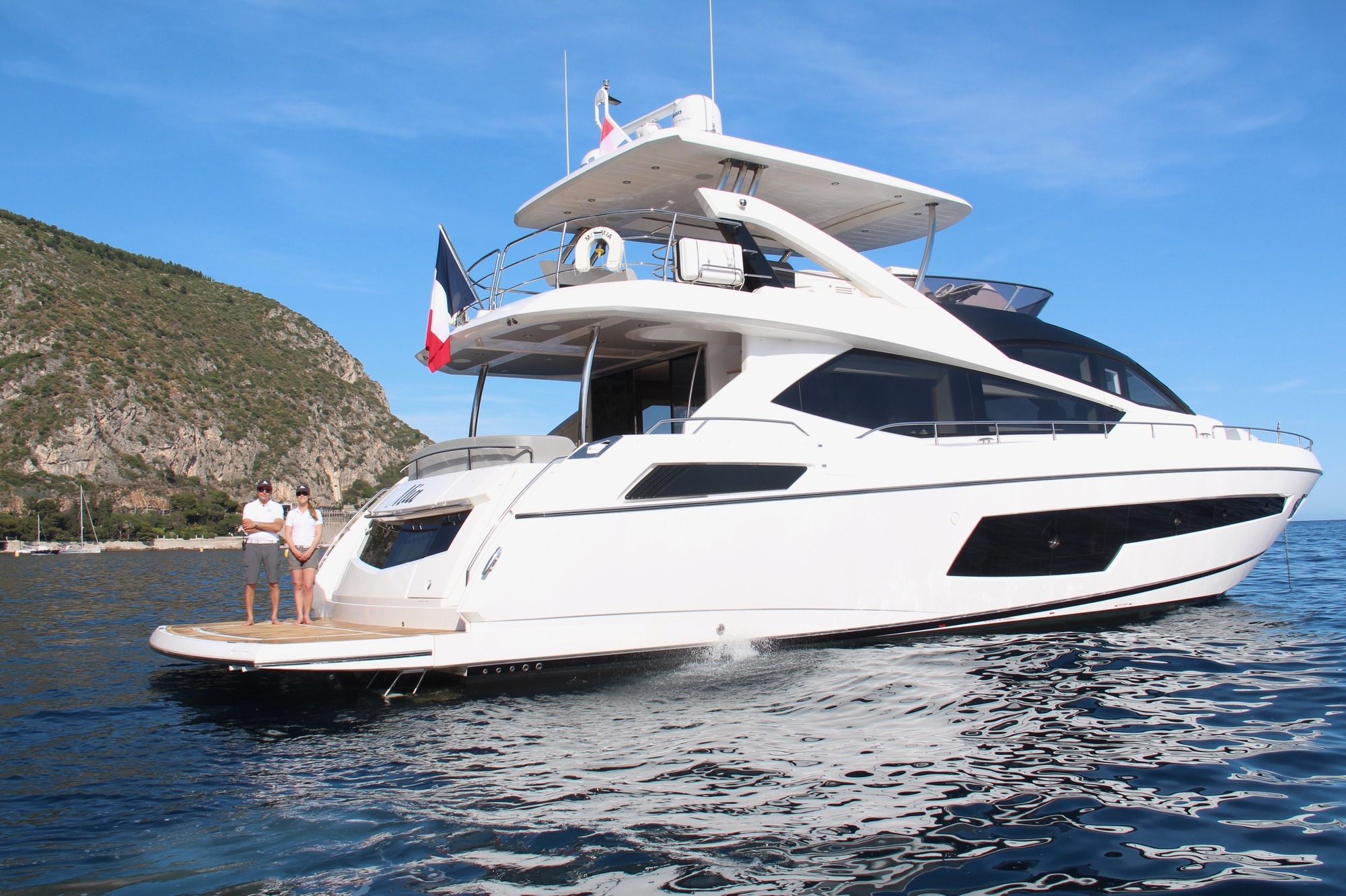The contemporary interiors from Sunseeker use glossy wooden panelling and ice white furnishings and upholstery to emphasise the interior ...