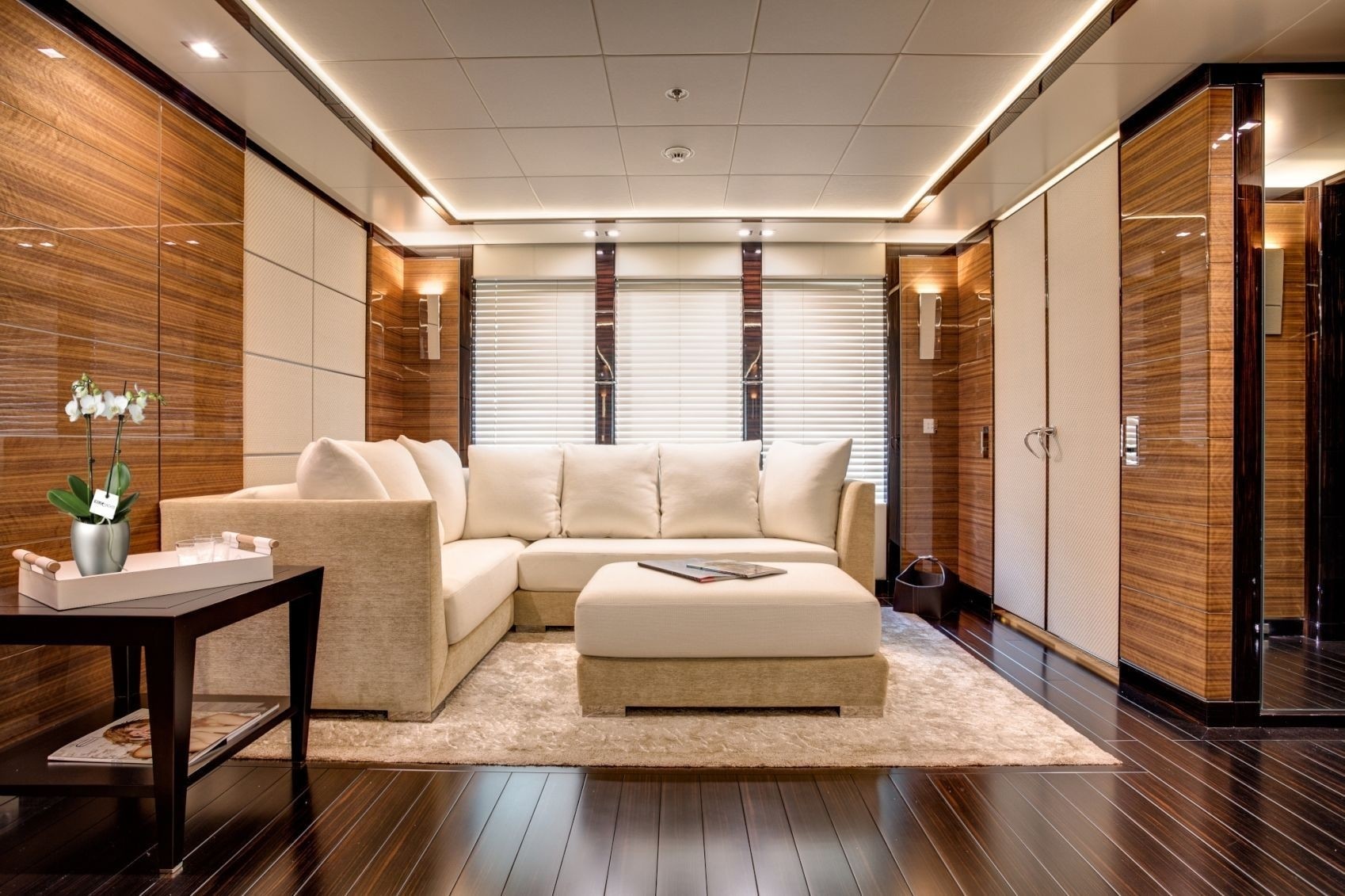 Behind, the full-beam Master suite has its own private lounge and en-suite facilities. The main salon uses art deco and Asian influences to create an inviting open-plan space. A grand table for 12 is placed forward, illuminated ...