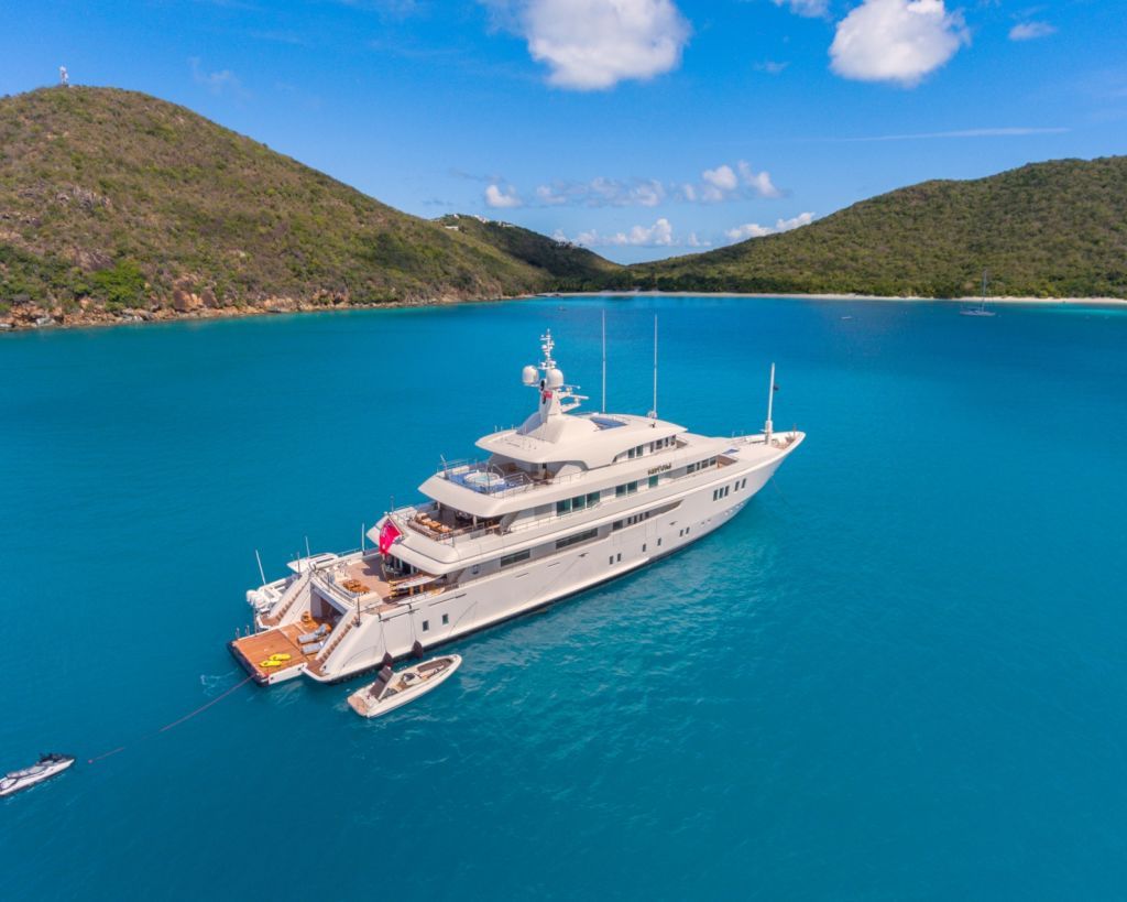 Aerial View Of The Yacht With Open Transom And Beach Club