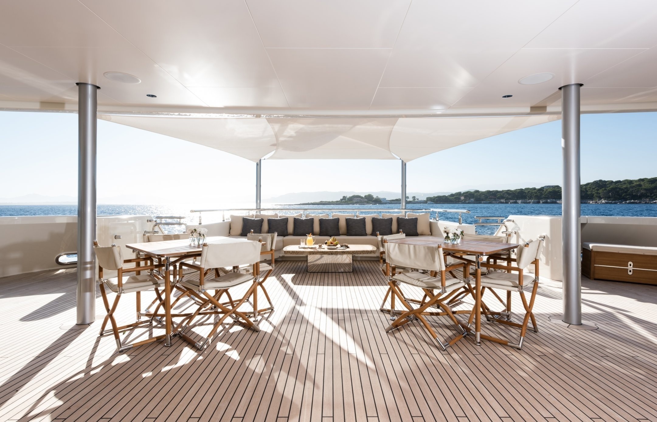 Terence Disdale completed her interior and exterior styling and her accommodation sleeps up to 12 guests over 6 cabins.