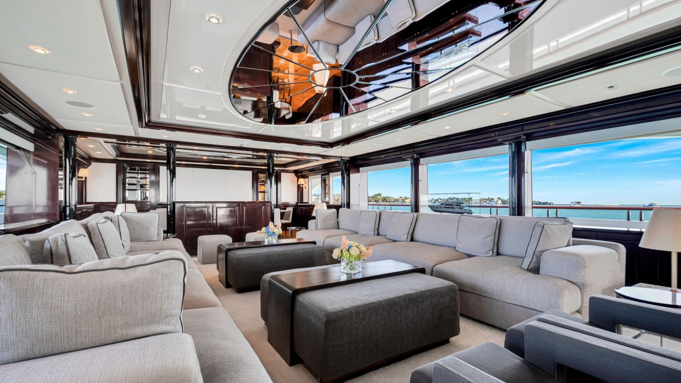 The salon and dining is an open plan, featuring a well-appointed lounge, offering ample seating and coffee tables and wet bar aft and full beam formal dining forward. Forward of the salon is the state of the art galley to port, with the foyer to starboard.