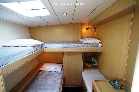 The luxury sailing catamaran LEVANTE has 4 cabins with ensuite heads & showers: 2 king size beds, 1 Queen size bed + 1 triple cabin for children only. All cabins are air-conditioned with private controls.