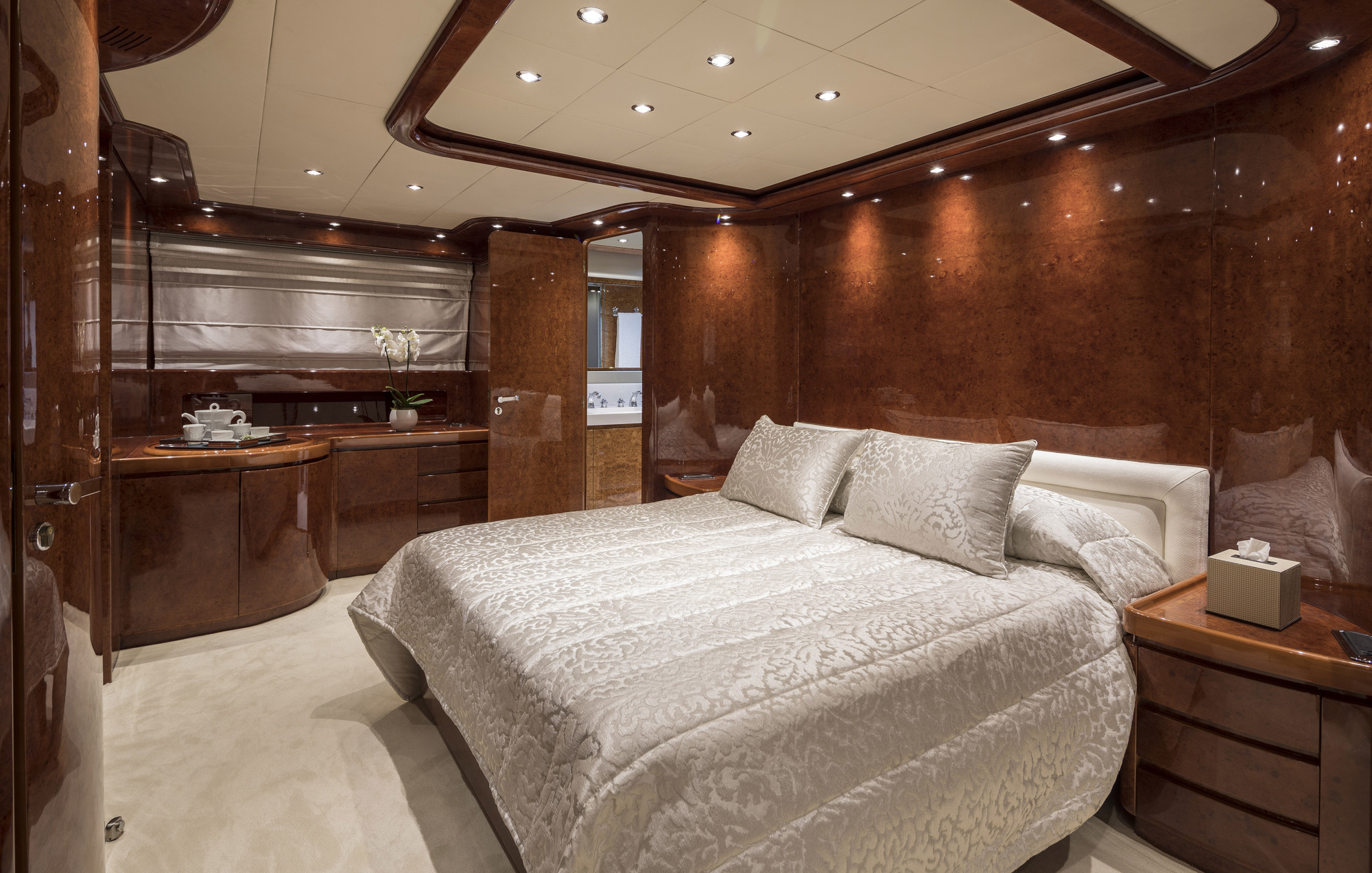 On the main deck, there is a VIP stateroom with en-suite facilities and enough space for a private lounge. The formal dining and salon combine into one large space using timeless ...