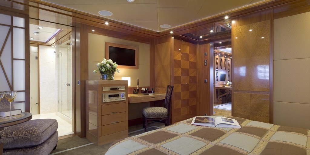 The guest accommodation is located amidships and consists of three spacious double cabins and a twin cabin convertible to a double, all with en-suite facilities. Forward of the guest accommodation is the crew sleeping ...