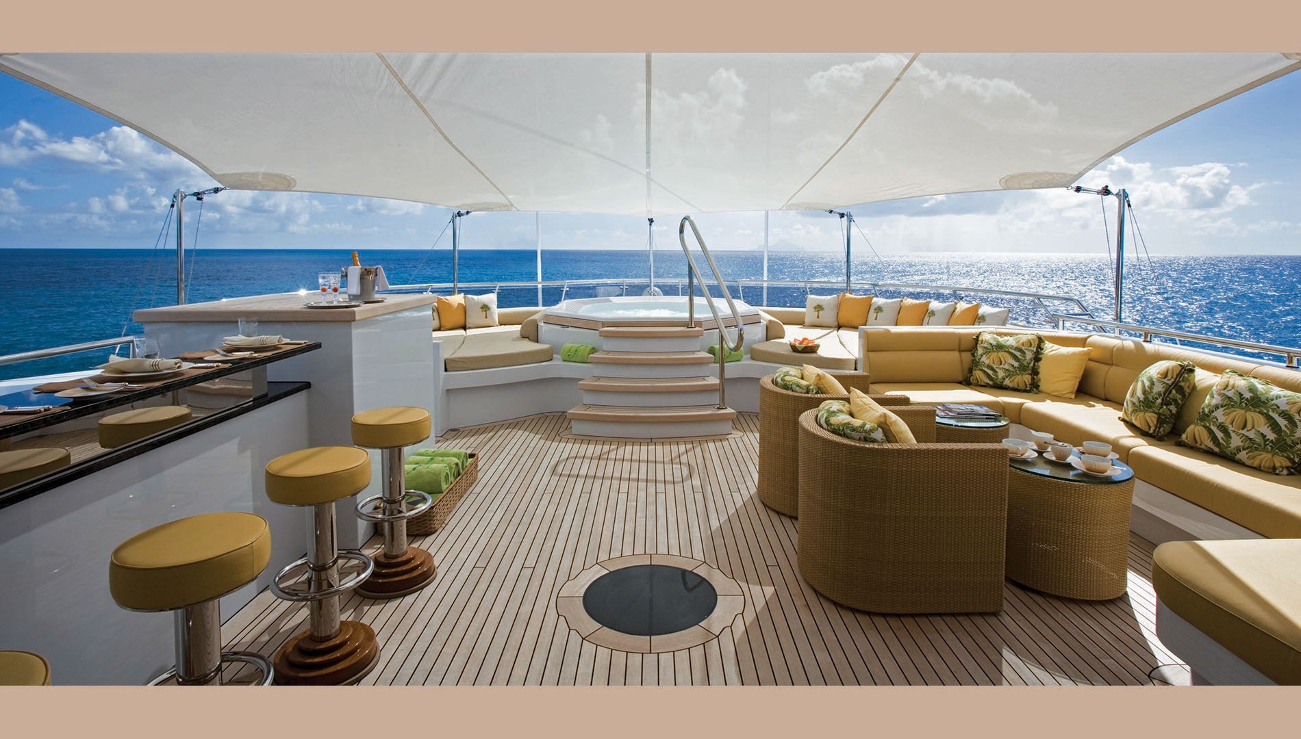 Expansive Sun Deck With Jacuzzi, Bar And Seating Areas