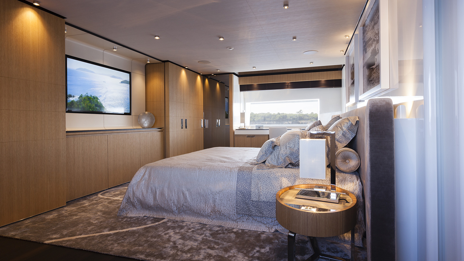 On the bridge deck, there is a cooler colour scheme of sapphire blue against crisp white.