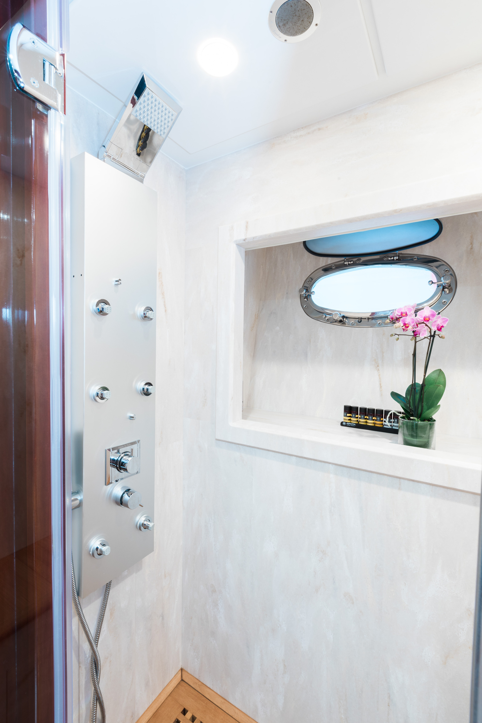 She is powered by two MTU 3360kw 2300hp M93 Diesel engines powering her up to a maximum speed of 24 knots and cruising speed of 21 knots. She has a fuel consumption of 580 litres per hour. ALBATOR 2 accommodates up to 12 charter guests in 5 cabins, including three doubles and two twins.