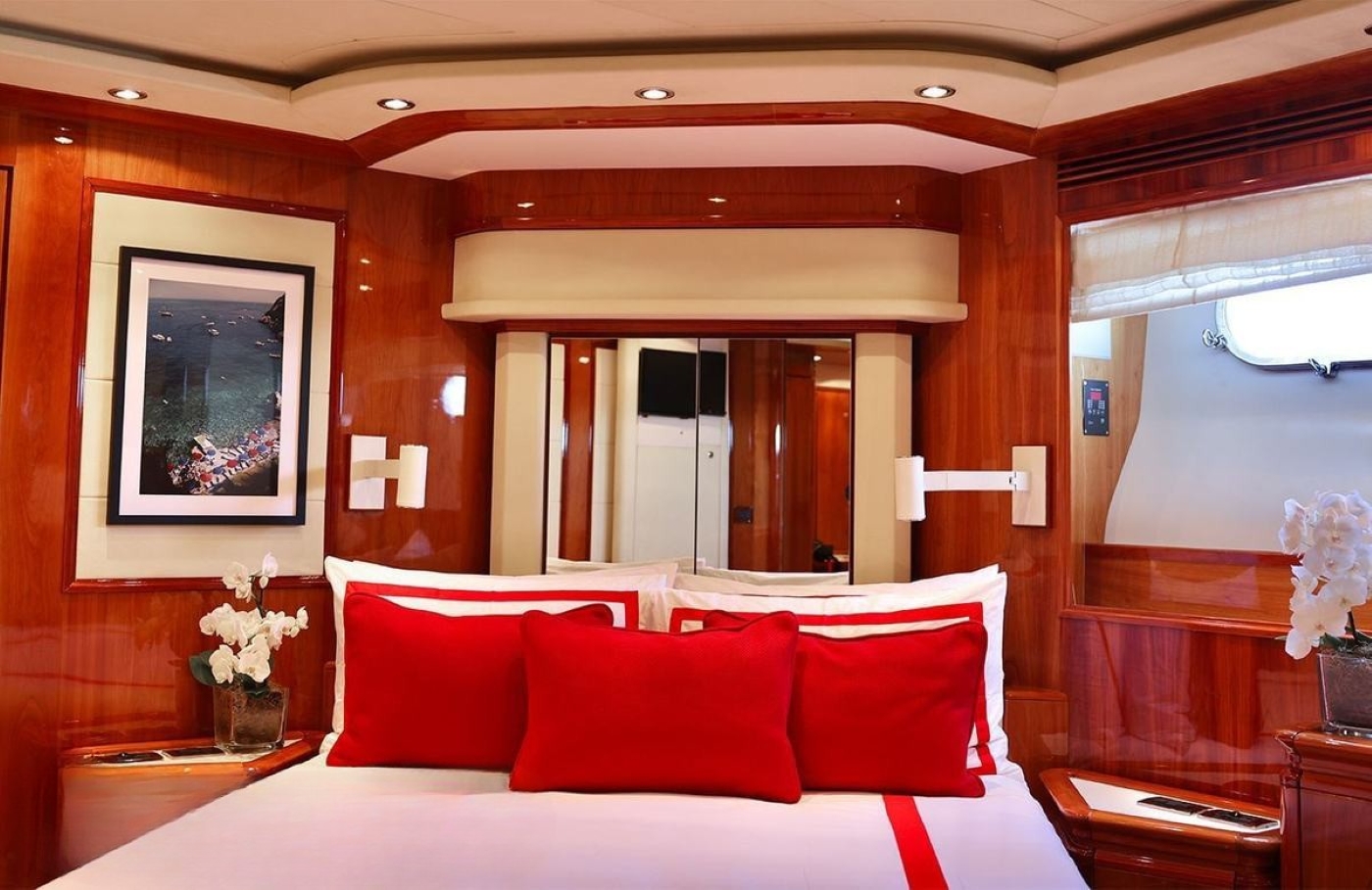 Luxury yacht CHAMPAGNE AND CAVIAR (Champagne Seas, Tacos of the Seas, Intimis, Rubbecan, Ruby) measures 34.14m (112') and was launched by the Italian shipyard Ferretti in 2004. Refitted in 2024, the yacht has modern classic, elegant interiors accommodating up to 12 charter guests over a five-cabin layout.