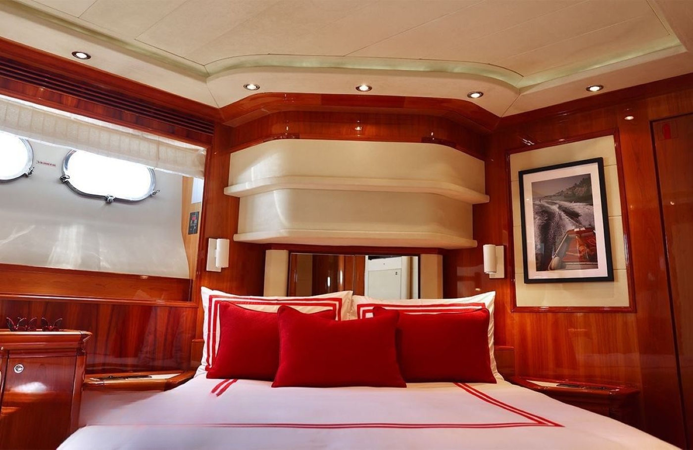 Luxury yacht CHAMPAGNE AND CAVIAR (Champagne Seas, Tacos of the Seas, Intimis, Rubbecan, Ruby) measures 34.14m (112') and was launched by the Italian shipyard Ferretti in 2004. Refitted in 2024, the yacht has modern classic, elegant interiors accommodating up to 12 charter guests over a five-cabin layout.