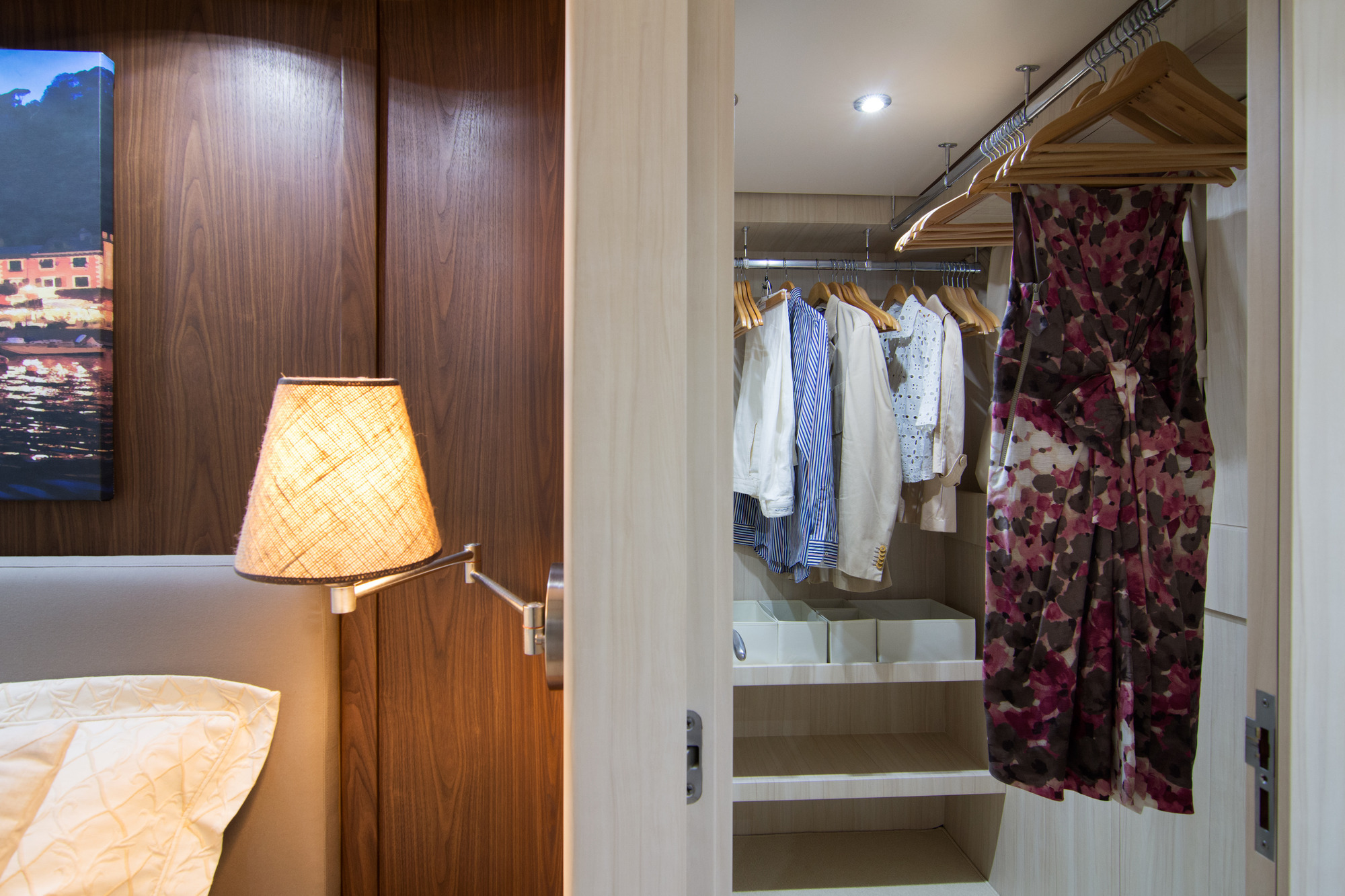 The beautiful interiors from Piero Lissoni blends neutral décor – wood flooring, soft fabrics and light oak furnishings – and is filled with natural light. The main salon is a lovely family friendly space configured with a comfortable lounge aft and a formal dining area forward.