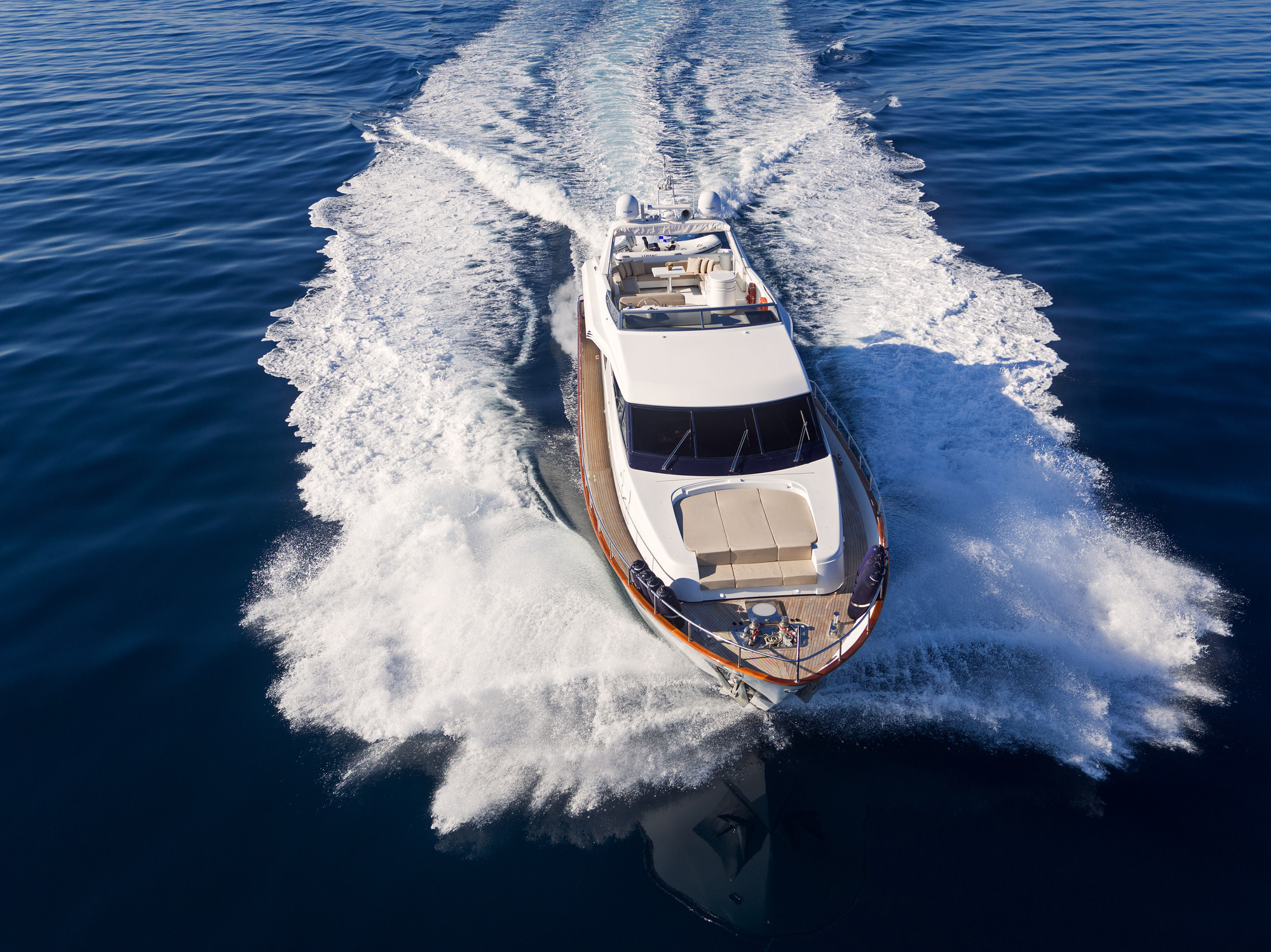 The beautiful interiors from Piero Lissoni blends neutral décor – wood flooring, soft fabrics and light oak furnishings – and is filled with natural light. The main salon is a lovely family friendly space configured with a comfortable lounge aft and a formal dining area forward.