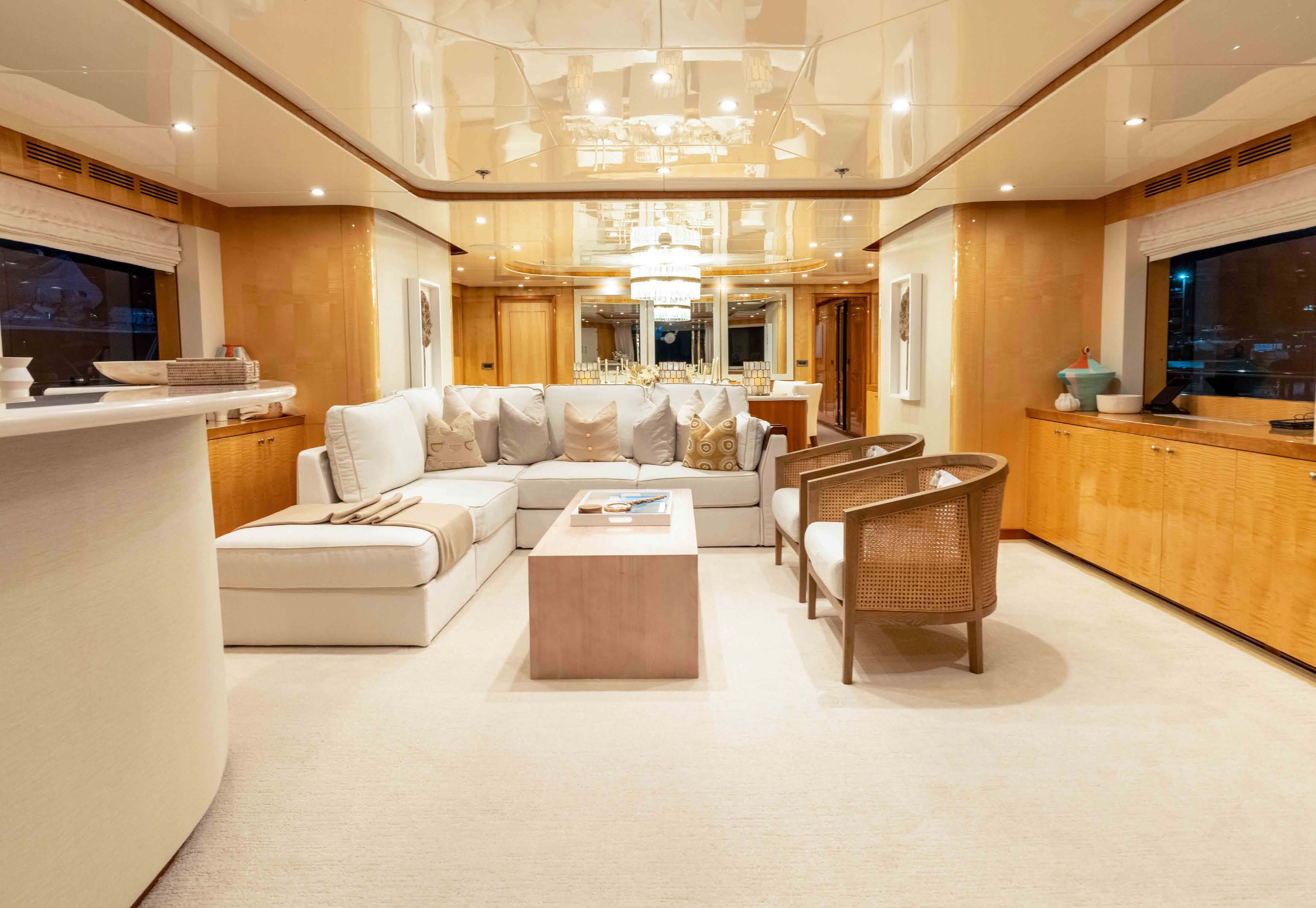 Espinosa Yacht Design also took care of the yacht's interior, creating a sophisticated yet relaxed atmosphere onboard. Soft cream tones of fabrics in combination with woods add some extra chic feel to the living spaces.