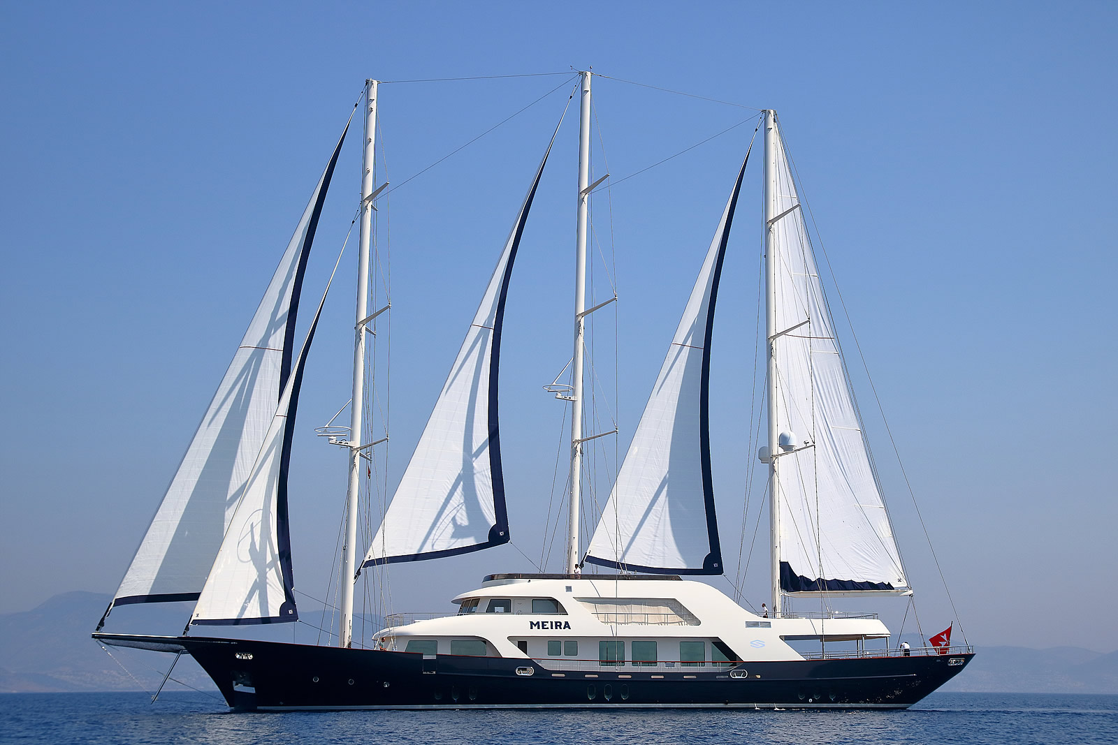 50m sailing yacht MEIRA provides yacht charters in Turkey, Ionian Islands, Greece, Cyclade Islands, and Aegean Islands.