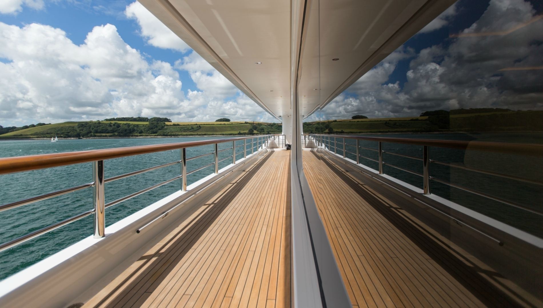 The lower deck has a large swim platform for sunbathing and easy access boarding and leaving the tenders.