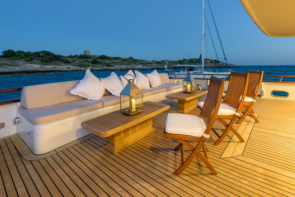 Luxury yacht CD TWO also has a well laid out sun deck with ample seating and sun pads for taking some sun and a bubbling Spa Pool where you can sip on a cocktail and take in the view.