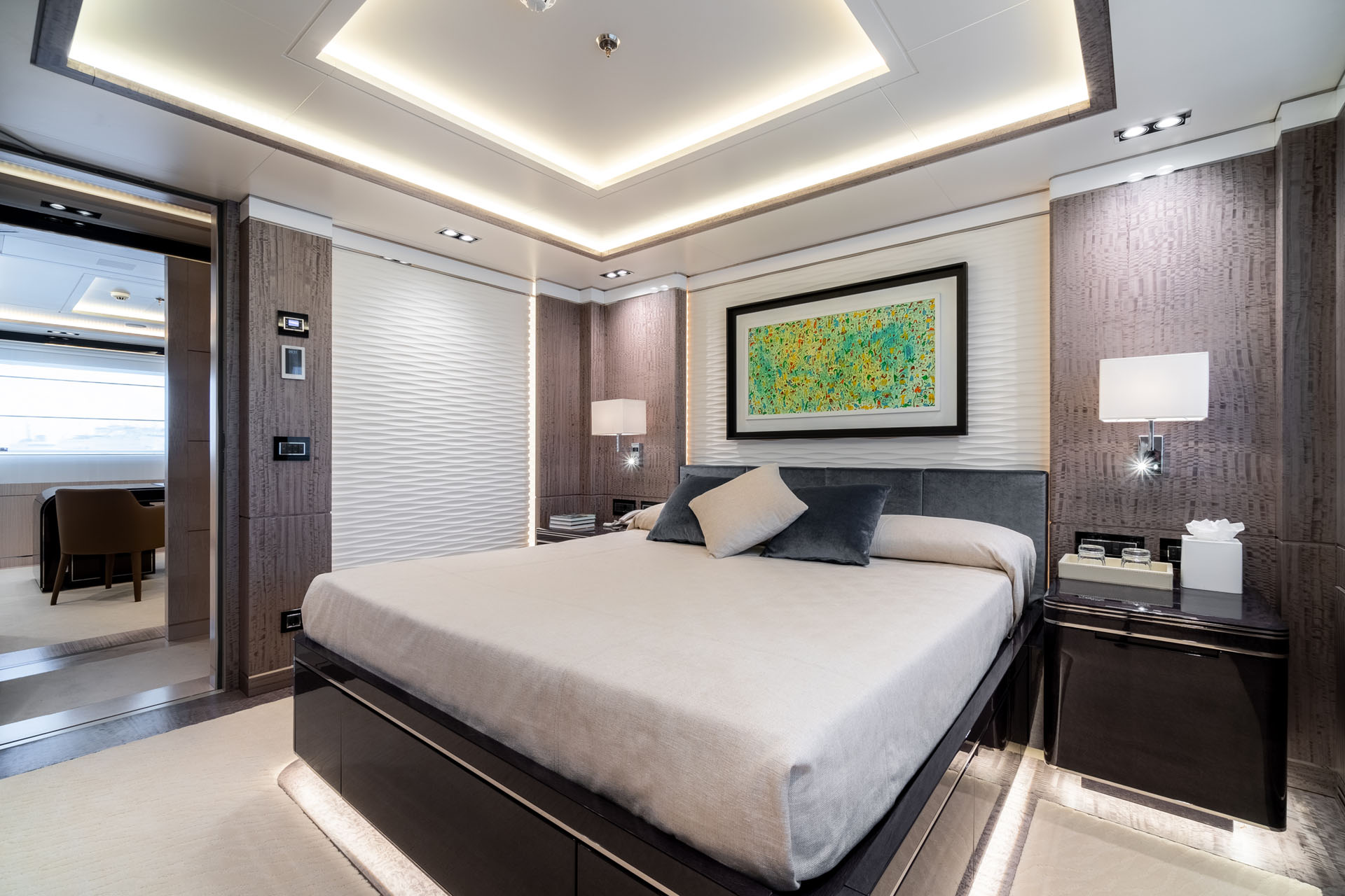 On the main deck, the foredeck hosts the full-beam VIP stateroom boasting a lounge and large en-suite bathroom. There are also four double cabins, two of which are convertible to twins and a further twin cabin.
