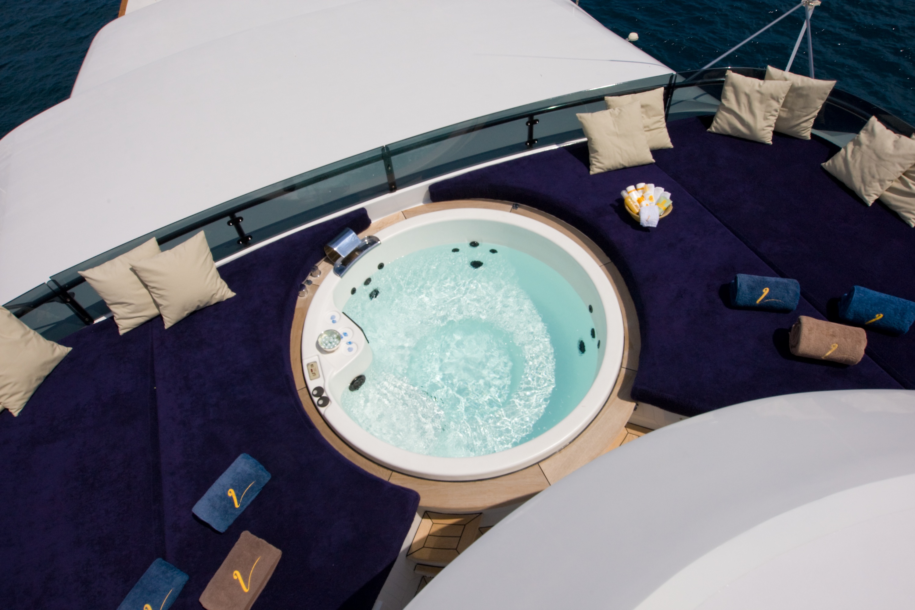 Luxury yacht INSIGNIA may be chartered to accommodate up to 12 guests in 7 cabins in the following layout: Master suite, VIP stateroom, one double and three twins.