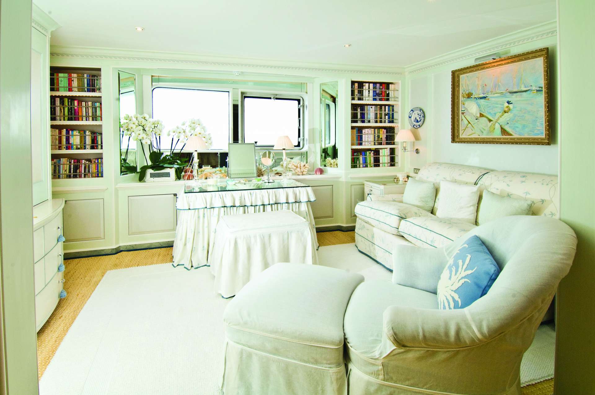 Above, the sundeck offers an abundance of sunpads and sun loungers along the stern, and the classically ...
