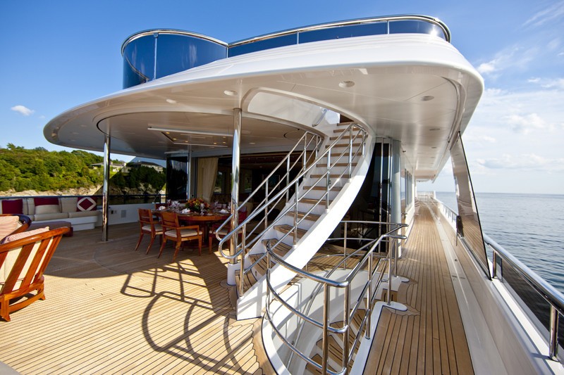 Interior and exterior styling are by Donald Starkey, who has incorporated cutting-edge technology into timeless surroundings such as the guest accommodation, which sleeps 12 charter guests over 6 cabins.